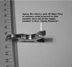 For avoiding potential cap jambs on these Colt hammers, fill the safety slot with JB Weld. Then highly polish the hammer face.